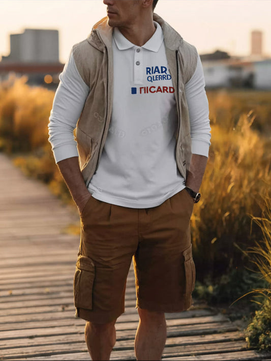 Polo décontracté vintage pour hommes avec imprimé de course de chevaux