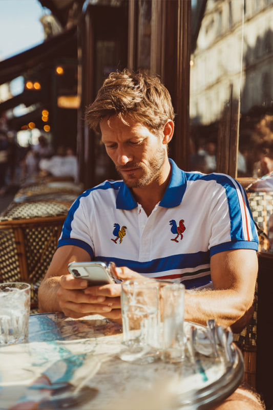 Chemise de rugby pour hommes, France, à trois boutons, manches longues