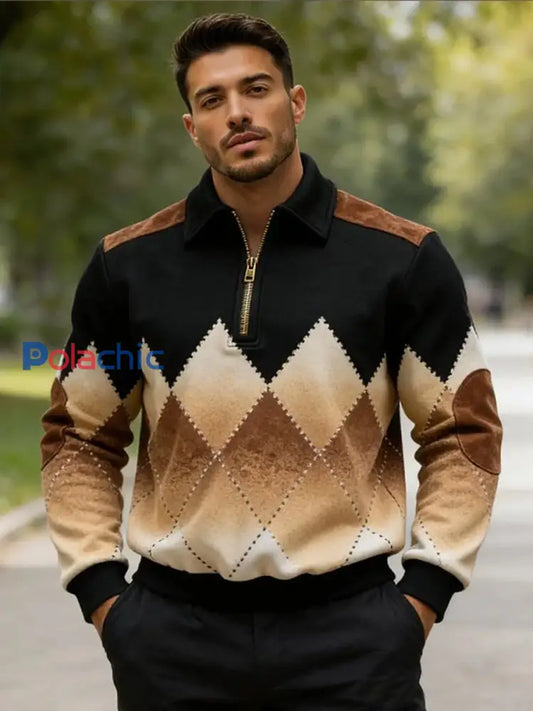 Sweat-shirt décontracté imprimé géométrique rétro pour hommes
