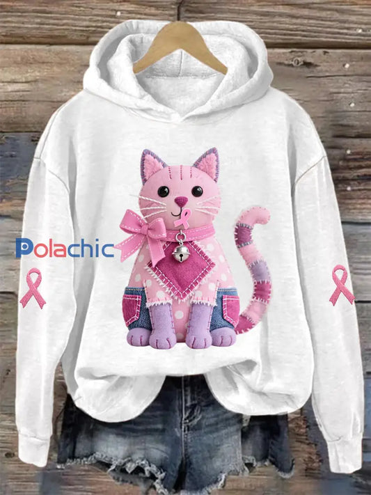 Femme Rose Chat Rose Ruban de Soutien de Sensibilisation au Cancer du Sein Sweatshirt