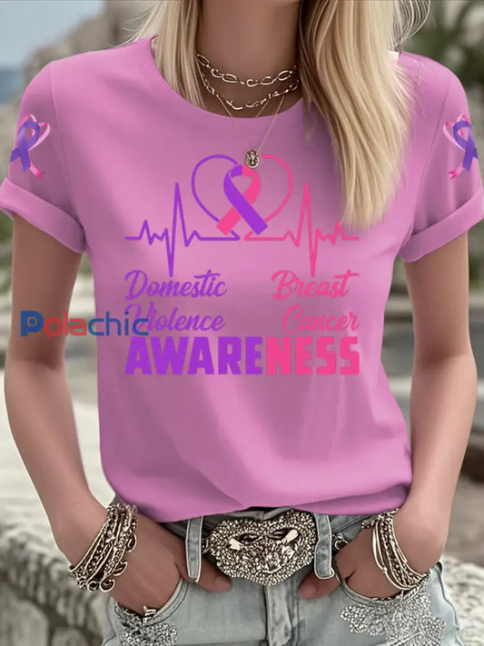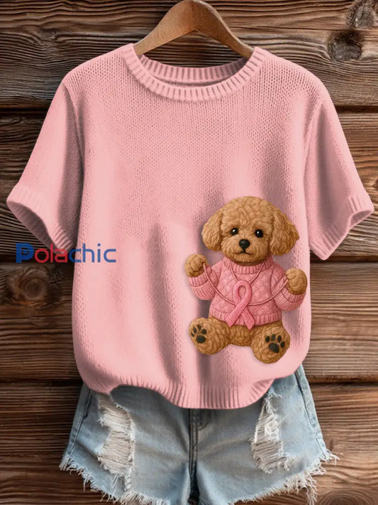 Femmes Cancer du sein Sensibilisation Chien Pattes Imitation Pull T-shirt à manches courtes