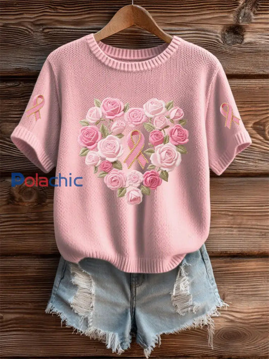 Pull Femme Rose Imprimé Sensibilisation Au Cancer Du Sein
