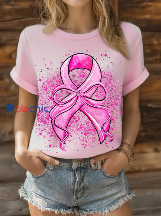 Haut Décontracté Femme Rose Cancer Du Sein Imprimé