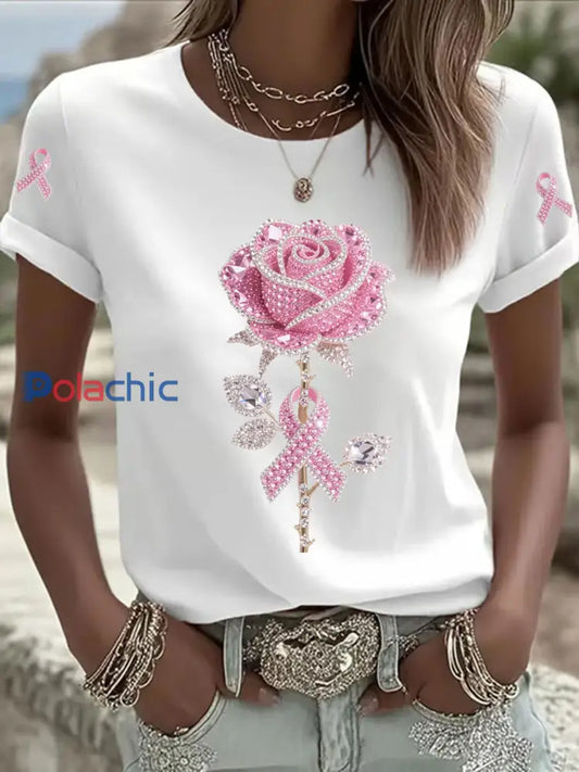 T-shirt décontracté à imprimé floral Cancer du sein pour femmes
