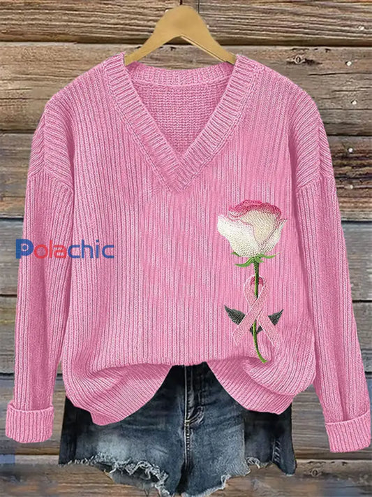 Sweatshirt Décontracté Femme Rose Imprimé Cancer Du Sein
