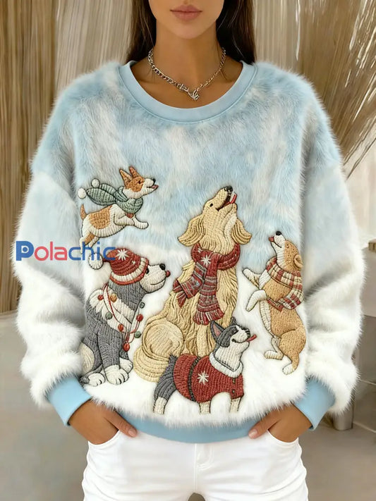 Mignon chien de Noël Art Print Flanelle Casual Sweatshirt