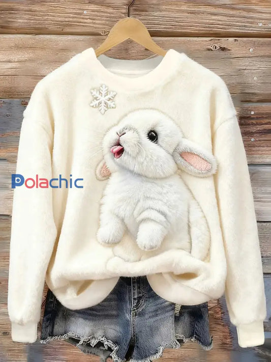 Sweat à capuche en flanelle de lapin de neige pour femmes