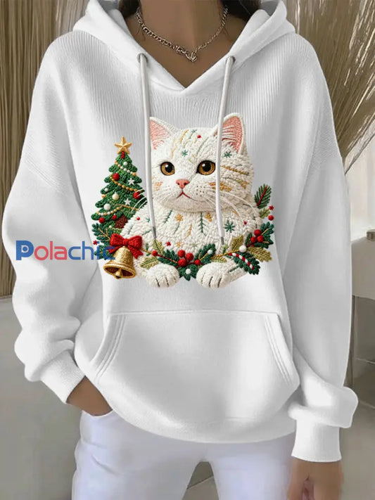Mignon de Noël Cat Art Print Casual Flanelle Hoodie des femmes