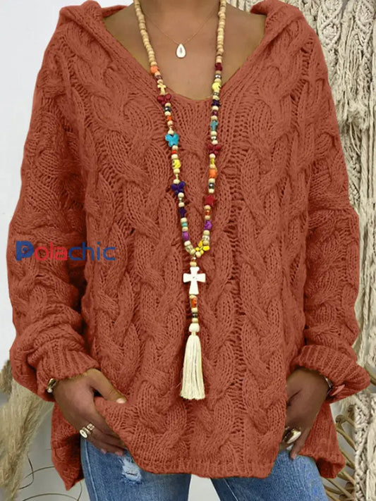 Chandail à capuchon en tricot torsadé à manches longues Femme
