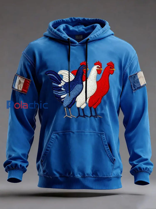 Chandail à capuchon surdimensionné avec poches Drapeau Français Le Coq Gaulois Homme