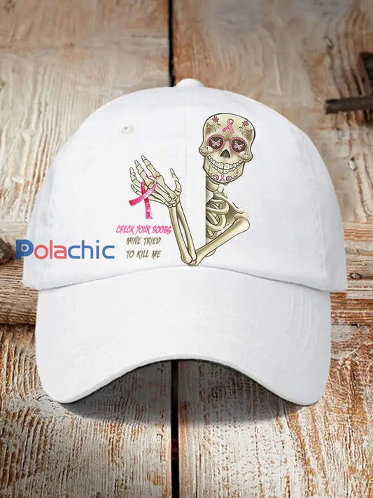 Unisexe drôle cancer du sein Awarenessd crâne vérifier vos seins mine essayé de me tuer imprimer casquette de baseball