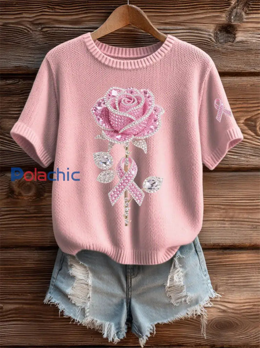 T-shirt décontracté à imprimé sensibilisation au cancer du sein pour femmes