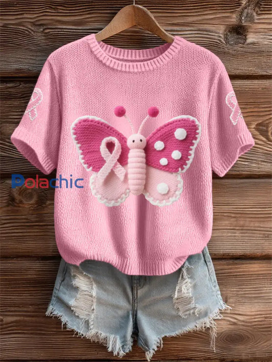 Les femmes du cancer du sein papillon imprimé mode Vintage lâche T-shirt à manches courtes