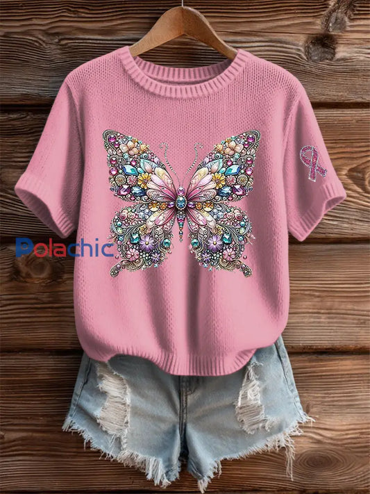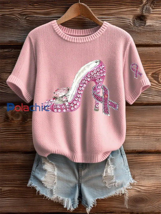 T-shirt Femme Rose Imprimé Cancer Du Sein