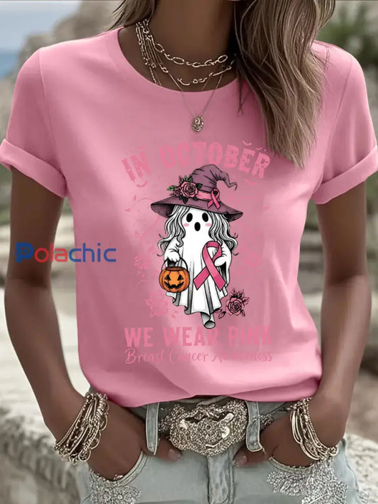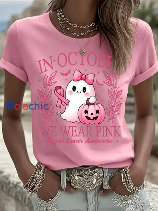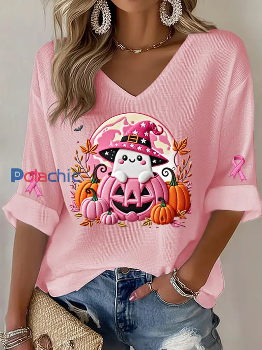 Femmes du cancer du sein ruban rose citrouille fantôme gaufre Imprimer T-shirt décontracté