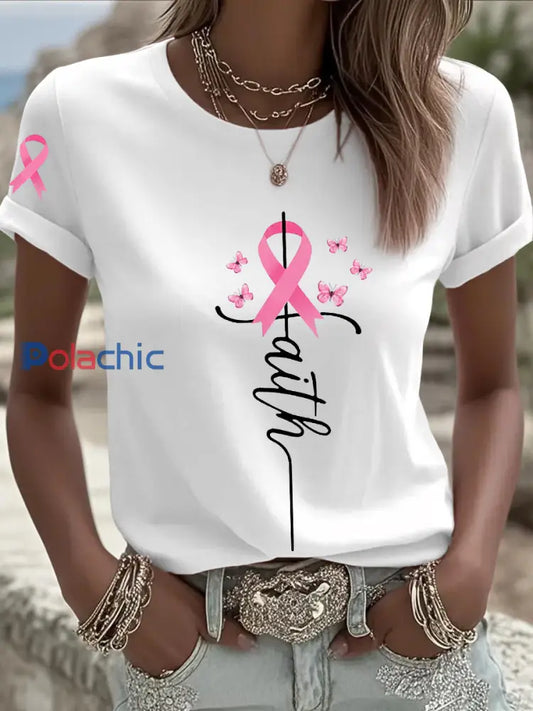 T-shirt à manches courtes Faith Pink Ribbon Women's Breast Cancer Awareness