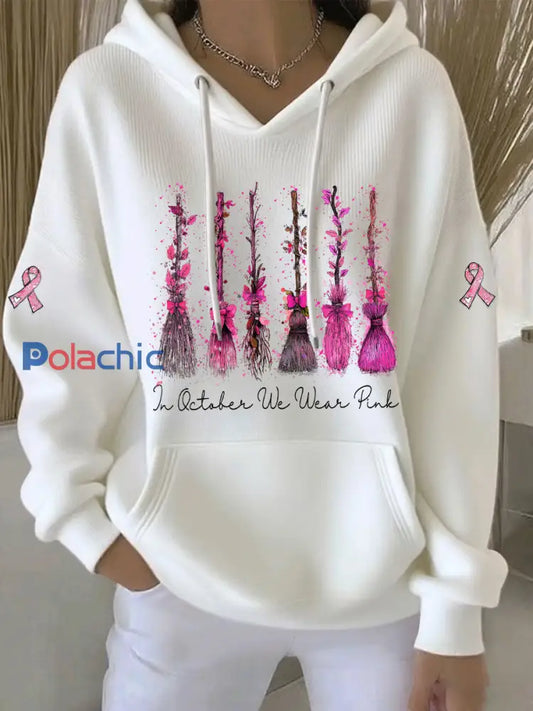Sweat à Capuche Décontracté Femme Rose Cancer Du Sein Imprimé