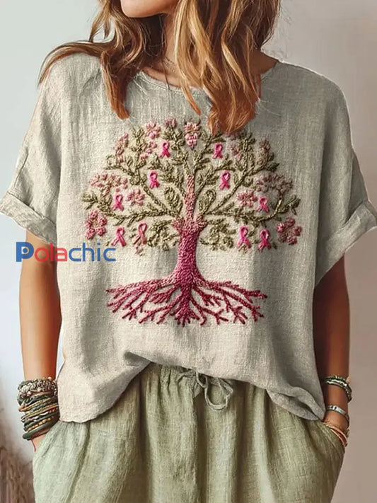 Femmes du cancer du sein imprimé Vintage Fashion lâche T-shirt à manches courtes