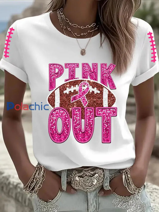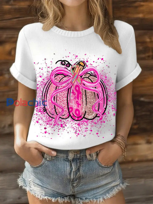 Femmes du cancer du sein sensibilisation rose ruban rose imprimé T-shirt décontracté