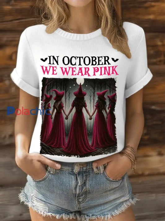 Femmes en octobre, nous portons des hauts de sorcière rose
