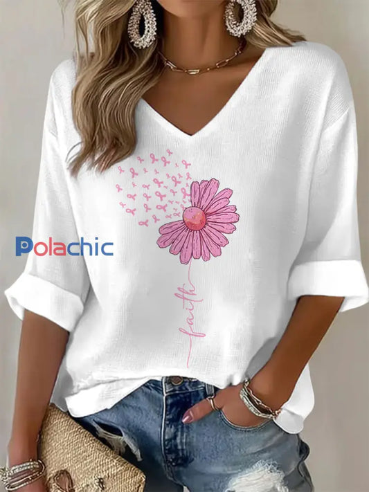 Femmes Rose Ruban Tournesol Foi Sensibilisation au Cancer Du Sein Soutien Col En V Haut