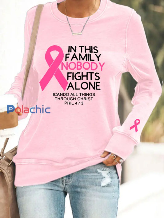 Sensibilisation au cancer du sein pour femmes "Dans cette famille, personne ne se bat seul" Sweatshirt imprimé