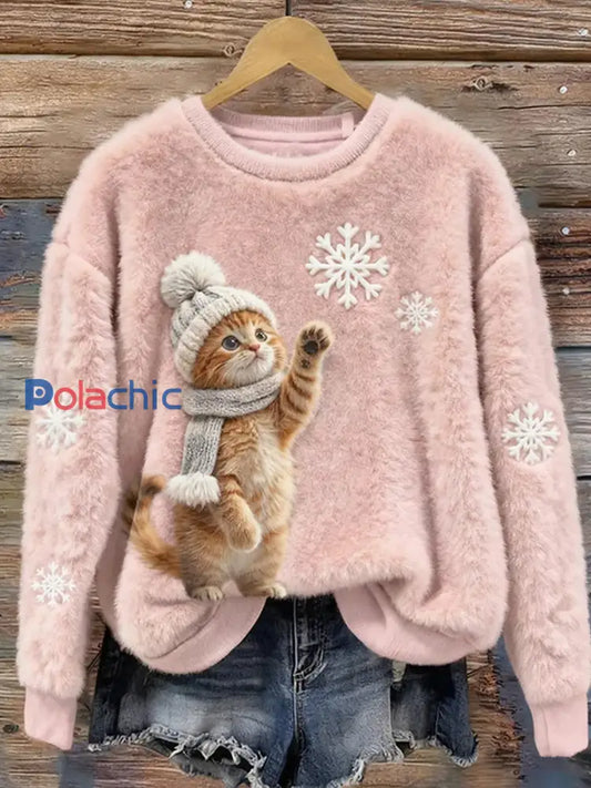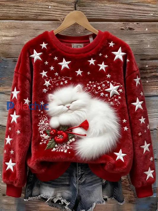 Sweat-shirt Décontracté à Manches Longues Motif Animal de Noël