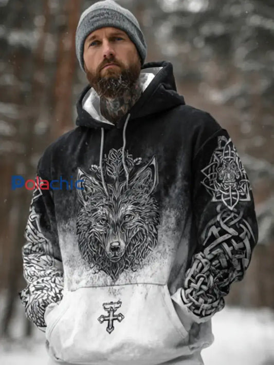Vintage Viking Style Snow Wolf Imprimer Sweat à capuche hommes