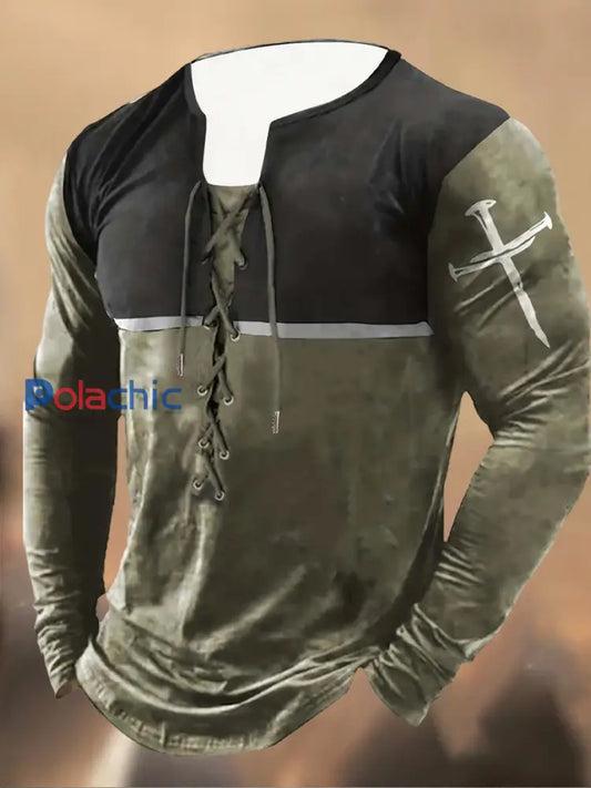 Les hommes de Viking guerrier imprimé à manches longues col montant Zipper agneau laine Top