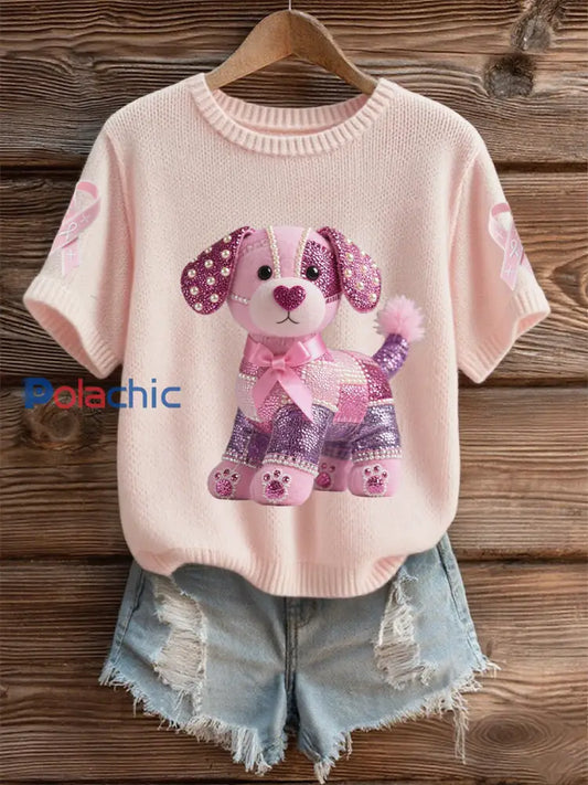 Soutien de la sensibilisation au cancer du sein pour femmes rose chien rose ruban imprimé à manches courtes hautPrix habituel €20,99Prix promotionnel €20,99 Prix habituelPrix unitaire par€35,99En vente