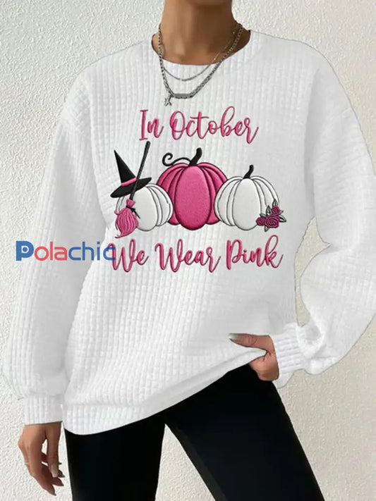 Sensibilisation au cancer du sein pour femmes en octobre Nous portons un sweat-shirt décontracté imprimé gaufré rose